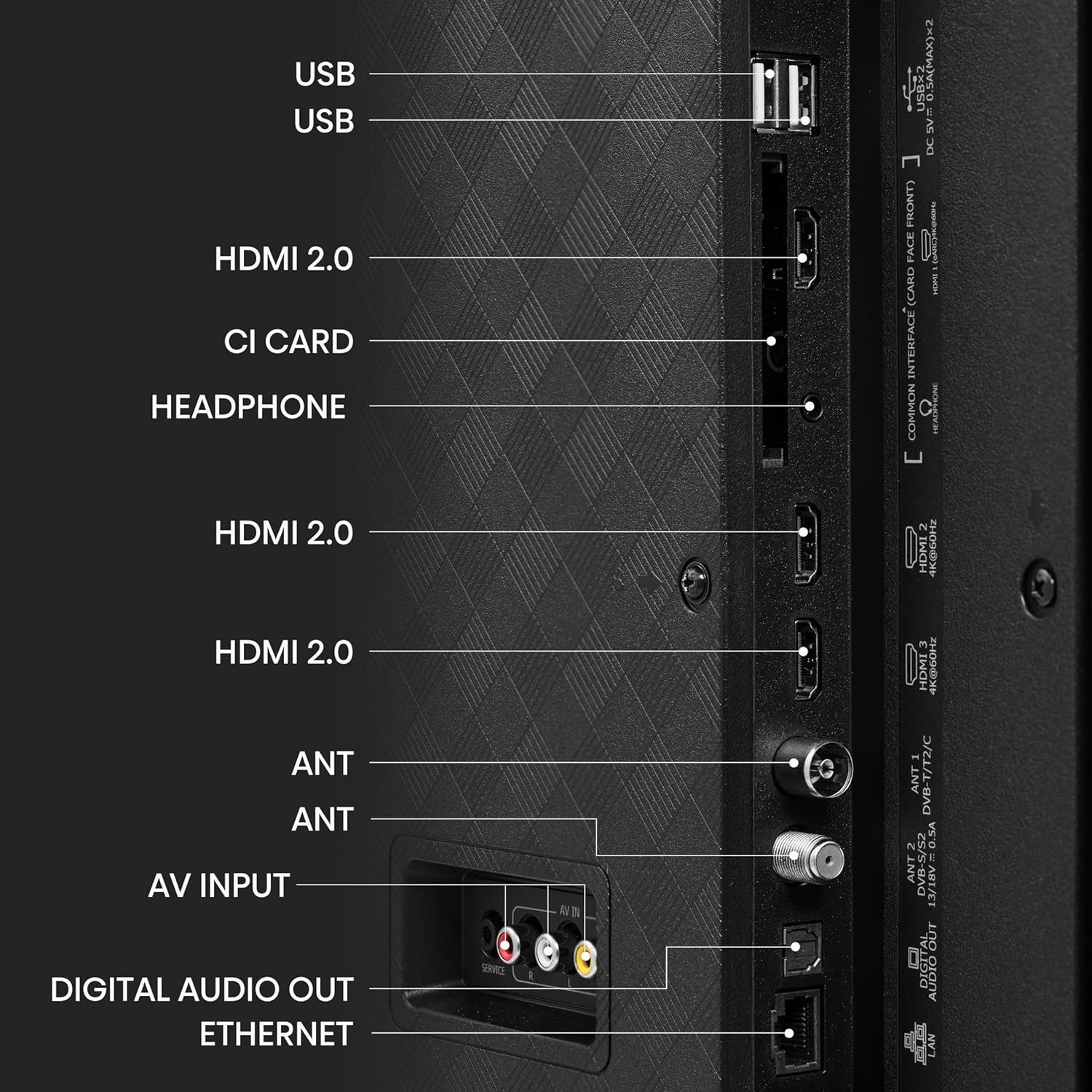 - Connectivity: 3 HDMI ports to connect set-top box, Blu Ray players, gaming console (HDMI 1 eARC supported) | 2 USB 2.0 port to connect hard drives and other USB devices | Dual-band Wi-Fi | Bluetooth